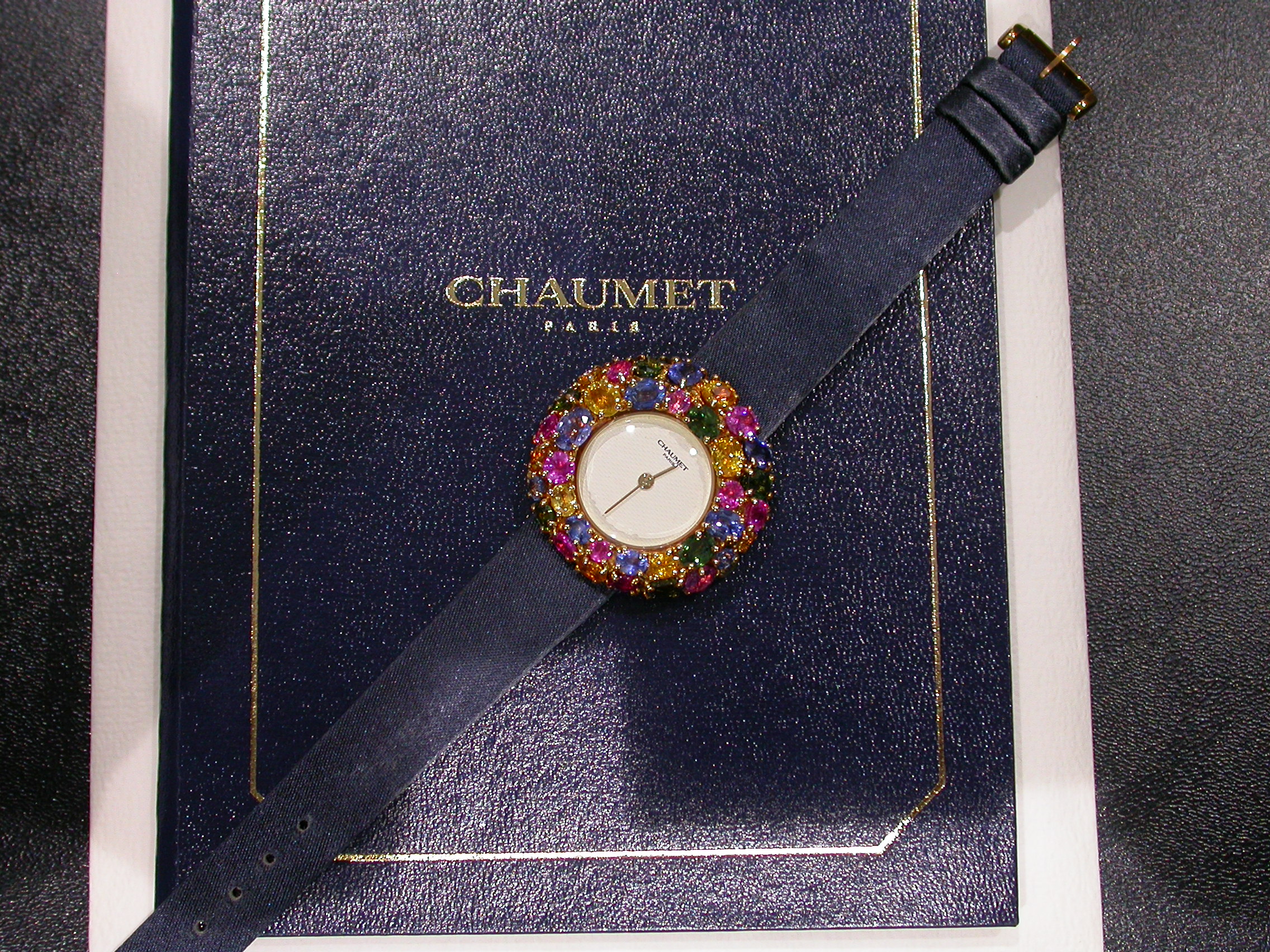 ショーメ K18YG 金無垢 アノー マルチカラーストーン クオーツ時計の買取です。